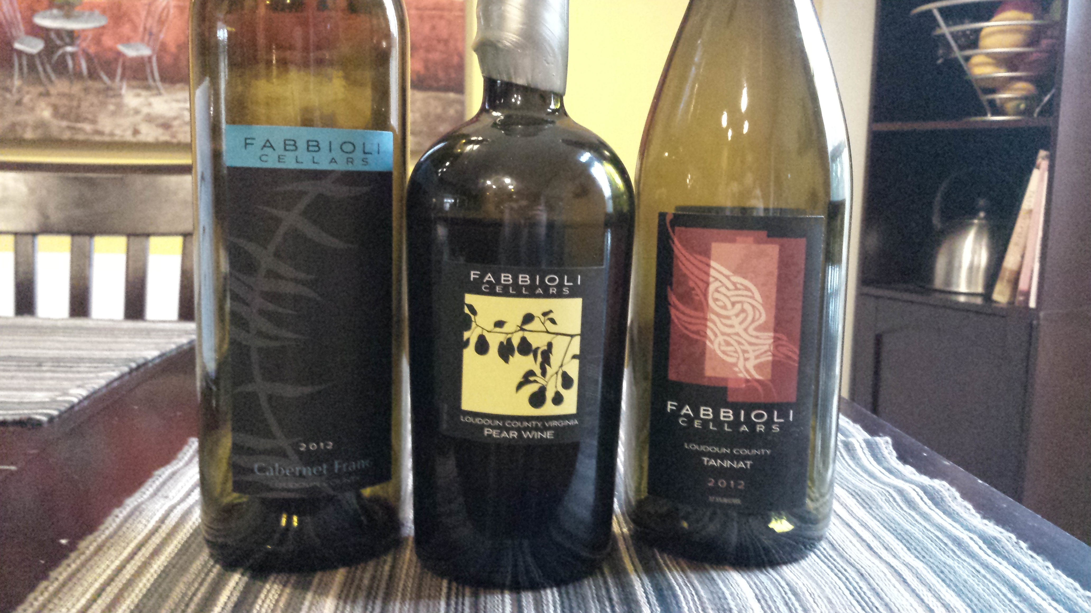 We finished up the tasting with a pear wine. The pears are grown on the Fabbioli grounds, and a portion (50% I believe) of the pears are sent off to Catoctin Creek Distilling Company after fermentation to be turned into pear brandy, which is then folded into the wine.
